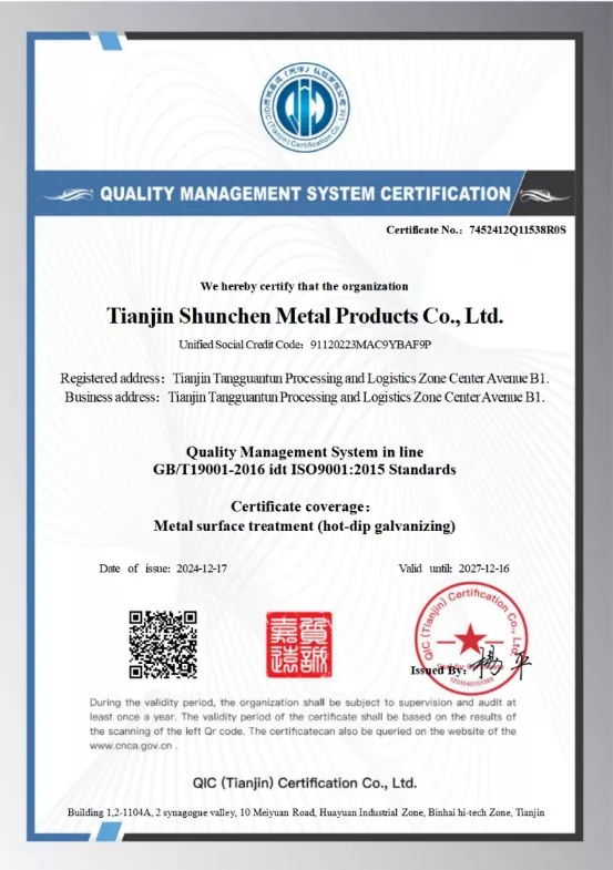 Shunchen'in üst yönetimi, sıcak daldırma galvaniz üretiminde 20 yılı aşkın deneyime ve teknolojiye sahiptir.