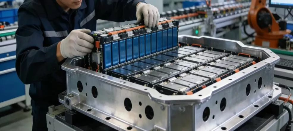 Ulaştırma Sektörü: Yeni Enerji Araç Akü Paketi Çerçeve Grubunun Yakın Çekimi
