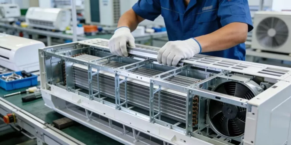 Buzdolapları ve klimaların dış kabuk çerçevesi ve iç destek bileşenlerinde kullanılır; çamaşır makineleri için taban çerçeveleri; ekranlar için çerçeve ve braketler; yığınları vb. doldurmak için dış kabuk çerçevesi ve dahili iletken destek bileşenleri. Hafif, yüksek hassasiyetli ve estetik açıdan hoş bir yüzey gereklidir ve delme ve bükme gibi ek işlemler entegre edilebilir.