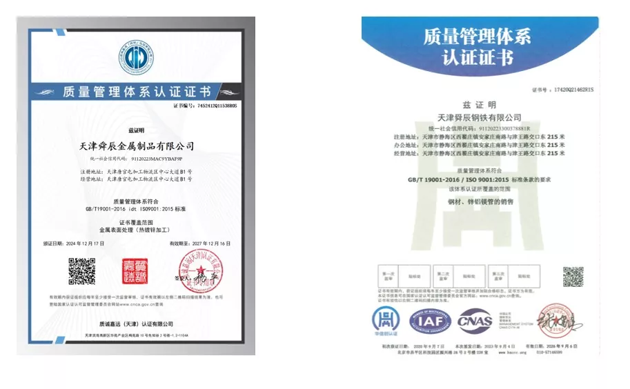 Neden bizi seçmelisiniz? Tianjin Shuncheng Industry, 12 yıllık sıfır temerrüt ve sıfır yıllık kalite vakası kaydını tutarak, ürün kalitesi için sağlam bir temel oluşturan, uzun yıllara dayanan birikmiş üretim teknolojisine sahiptir. Şirket, ulusal üretim standartlarına sıkı sıkıya bağlı kalmakta olup ISO 9000, 3A sistem sertifikalarına ve AB CE sertifikasına sahiptir. 12 adımlı bir süreç ve 3 katmanlı tam denetim mekanizmasıyla yıllık sıfır kalite ve güvenlik olayı ve 12 yıl boyunca sıfır sipariş temerrüdüne ulaşarak kanıtlanmış gücünü ortaya koyuyor. Bitmiş her ürün, paketleme ve nakliye öncesinde kurutma, inceleme ve ince son işlemlerden geçirilerek üstün kalite sağlanır. Şirket, 300'ün üzerinde üretim işçisi istihdam etmekte ve 236 spesifikasyonda ERW çelik boru üretebilmekte, eksiksiz bir spesifikasyon yelpazesi sunmakta ve farklı ihtiyaçları tam olarak karşılamak için özelleştirmeyi desteklemektedir.